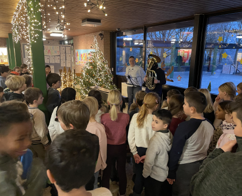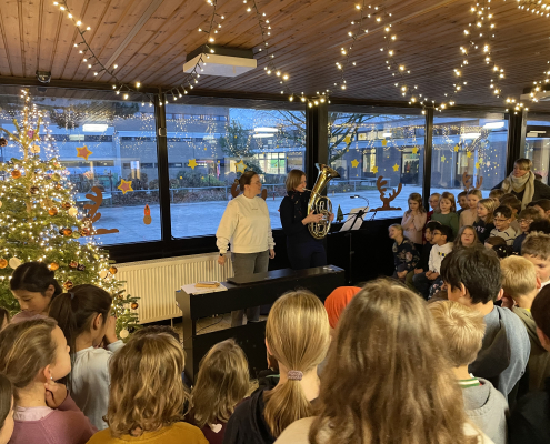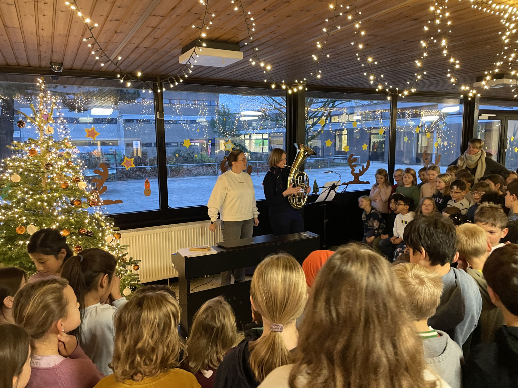 Wie in jedem Jahr trifft sich die ganze Schulgemeinschaft der Michaelisschule einmal in der Woche zum Adventssingen. Angeleitet von Frau Gründel und Frau Linkmeyer werden zusammen ein paar schöne Weihnachtslieder gesungen.
