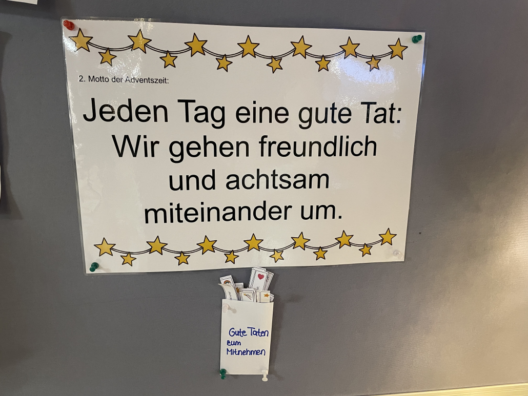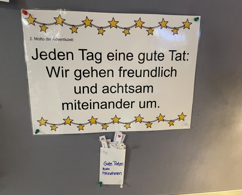 Das Motto der ersten Adventswoche lautet. „Wir begrüßen uns gegenseitig, wenn wir uns im Schulgebäude begegnen“.