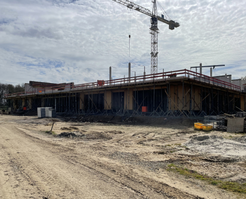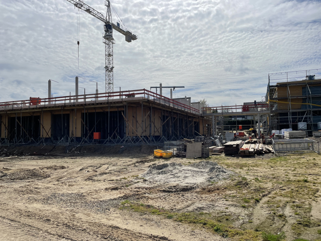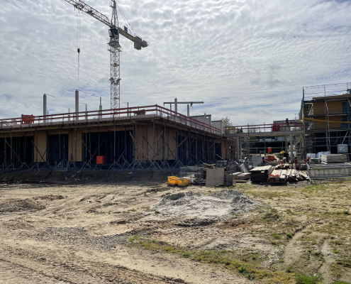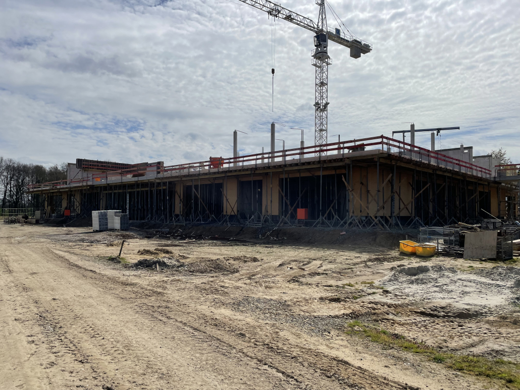 Am Montag 13.04.2026 hatte ein Teil des Kollegiums die Möglichkeit, die Baustelle des Neubaus der Michaelisschule zu besichtigen. Ausgerüstet mit Bauhelmen zeigte uns Herr Blomenkamp von der Stadt Georgsmarienhütte den bisherigen Rohbau und erklärte, welche Räume entstehen. Bisher ist noch etwas Phantasie gefragt, aber Herr Blomenkamp ist zuversichtlich, den Zeitplan einzuhalten, so dass der Einzug im Sommer 2027 erfolgen soll.