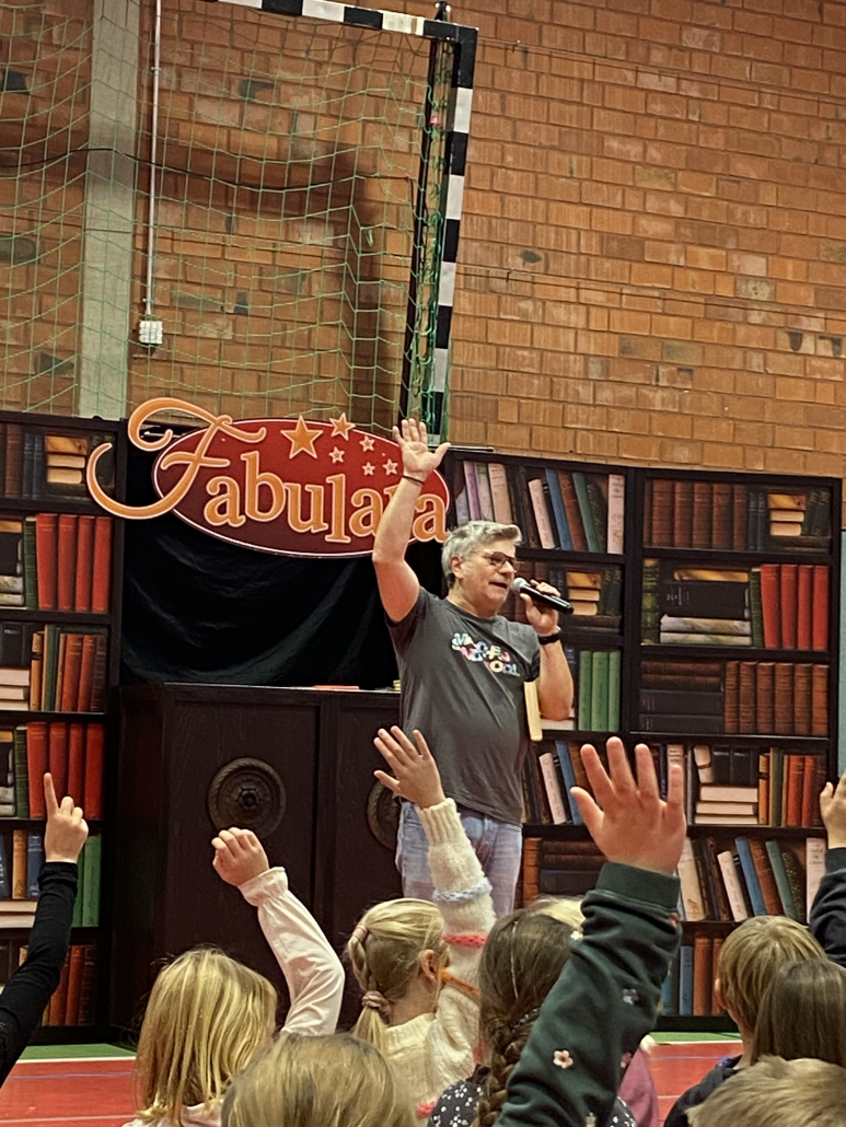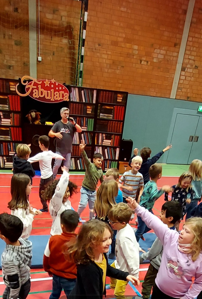 Am Dienstag, 07.Oktober durften die Kinder der ersten und zweiten Klassen an der Aufführung des musikalischen Leseprojekts Fabulara teilnehmen. Mit viel Energie begeisterte Yogi die Kinder und zeigte ihnen: ‚Märchen sind cool‘. Ziel des Projekts ist es, die Freude am Lesen zu wecken und die Neugier auf Geschichten zu fördern. Die Kinder hatten sehr viel Spaß und beteiligten sich gern an den Liedern, Bewegungen und Tänzen. Alle freuen sich schon auf den Workshop zu dieser Aufführung, der am 5. 12. 25 in den einzelnen Klassen stattfinden wird.