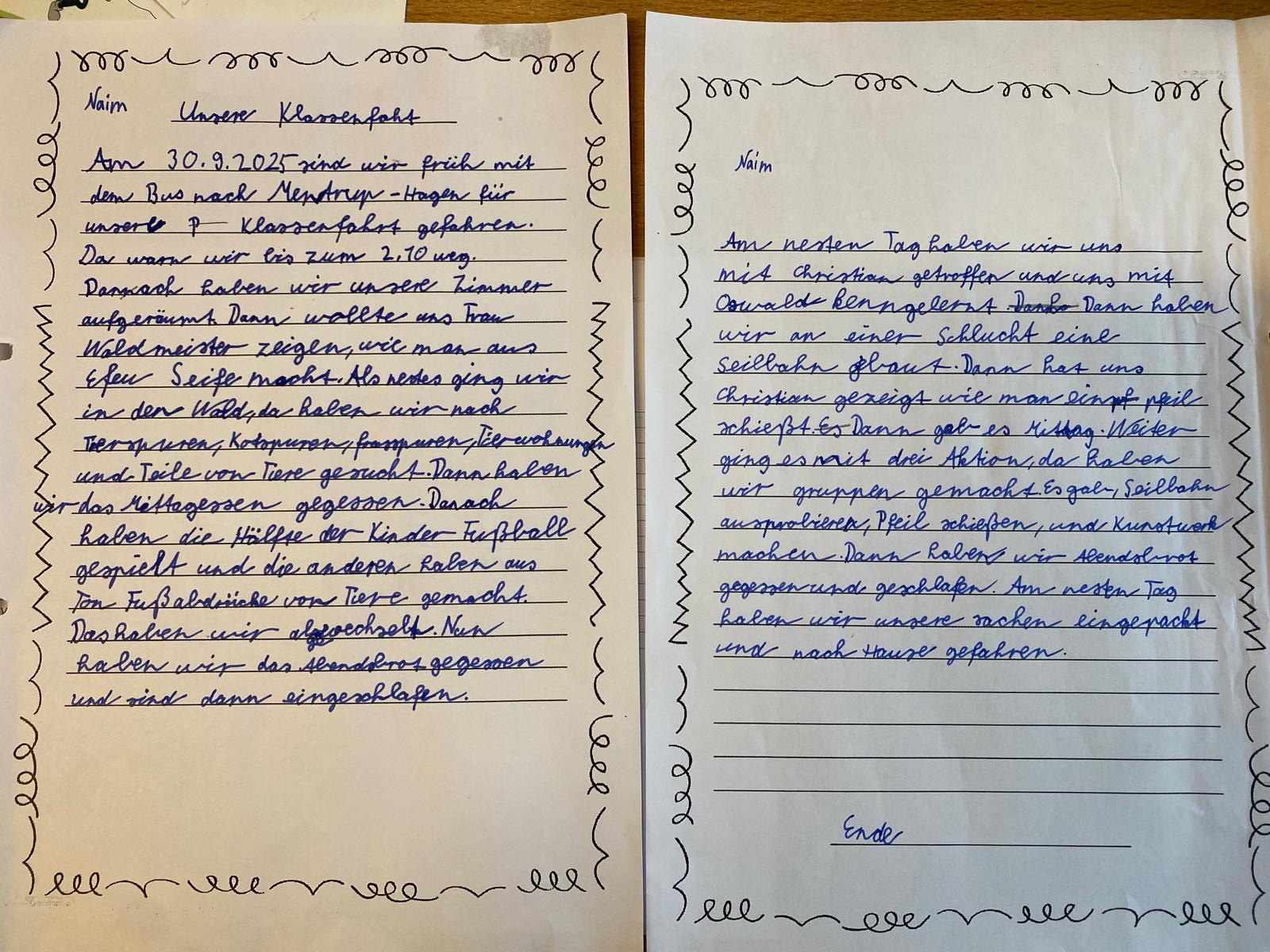 Die  Klassen 4a und 4b waren Anfang Oktober auf Klassenfahrt. Zwei Kinder des vierten Jahrgangs beschreiben ihre Zeit.